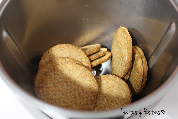 Ponemos las galletas en el vaso y las trituramos. Yo he puesto galletas de avena, pero podeis usar las que más os gusten.