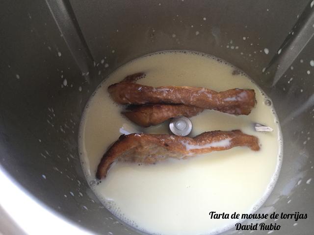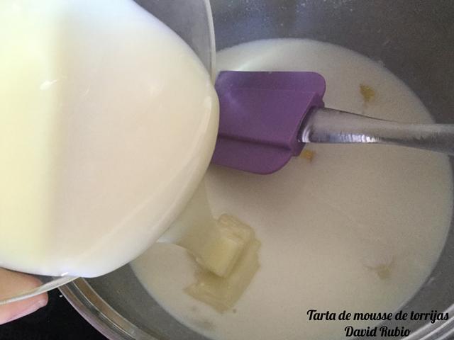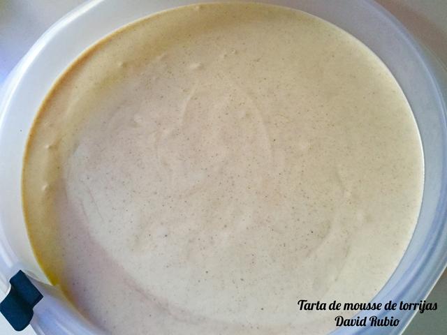 Una vez bien mezclado, vertemos en nuestro molde sobre la base de torrijas.