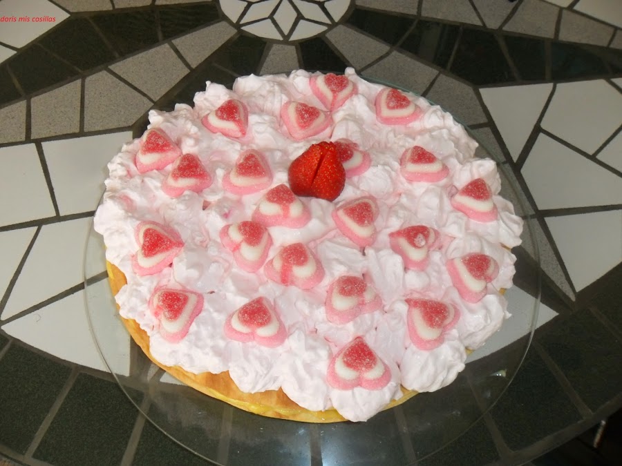 Adornamos con unas gominolas de forma de corazones y a disfrutar.