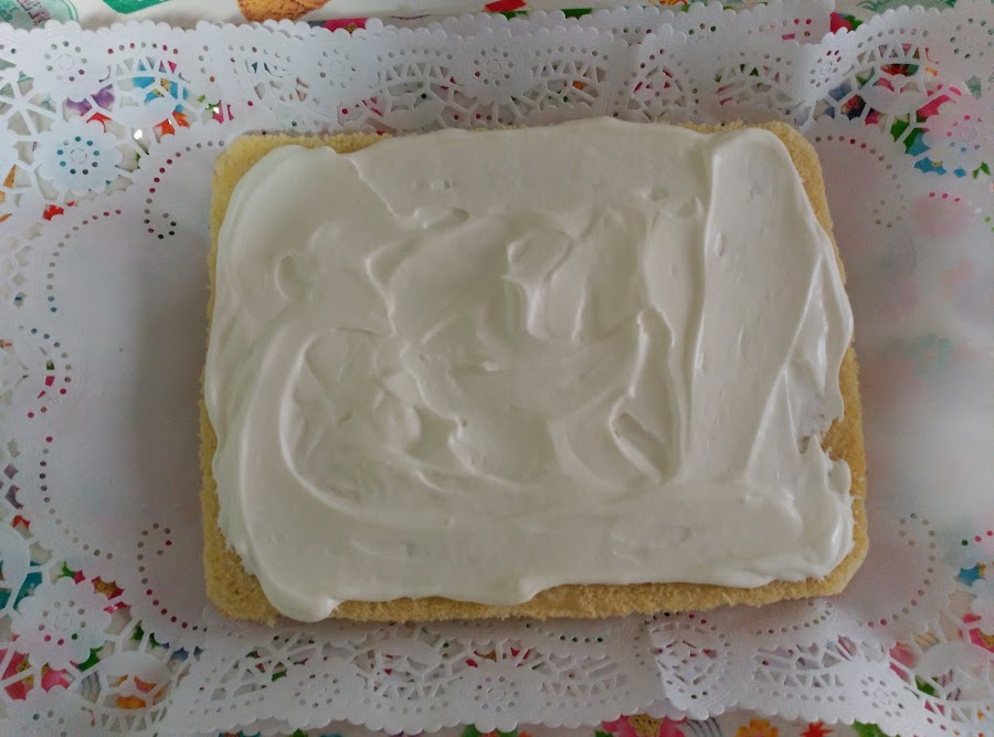 Poner una capa de nata (crema de leche) por toda la superficie.