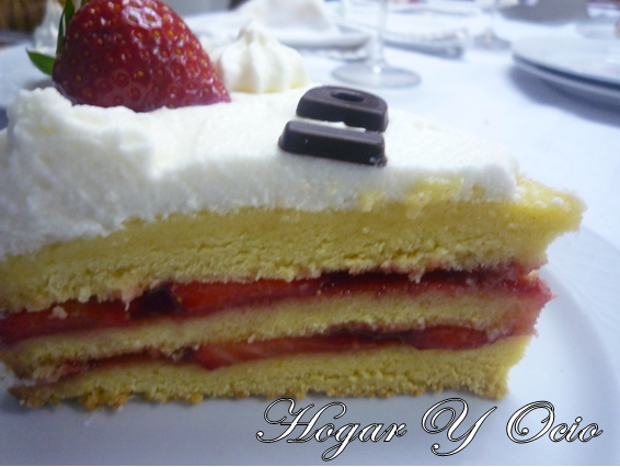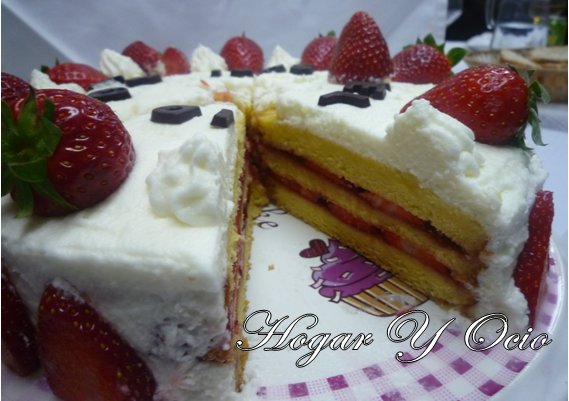 6. Cubrimos el bizcocho con la nata montada (crema de leche) y decoramos. Y por fin... ¡¡¡tarta hecha!!!