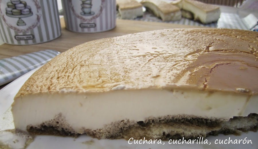 4.- Vertemos el preparado sobre el caramelo y encima las soletillas bañadas en café.