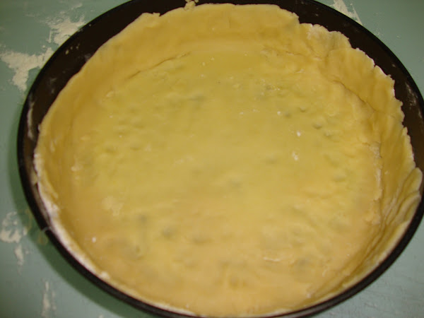 Pasado el tiempo extendemos la masa hasta un grosor de unos 3-5 mm y la ponemos en un molde engrasado. Volvemos a tapar y metemos de nuevo en la nevera unos 30-40 minutos.