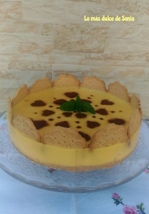 Vertemos la mezcla sobre el molde con la base de galletas al que le habremos puesto las galletas alrededor. Dejamos enfriar a temperatura ambiente y guardamos en la nevera.