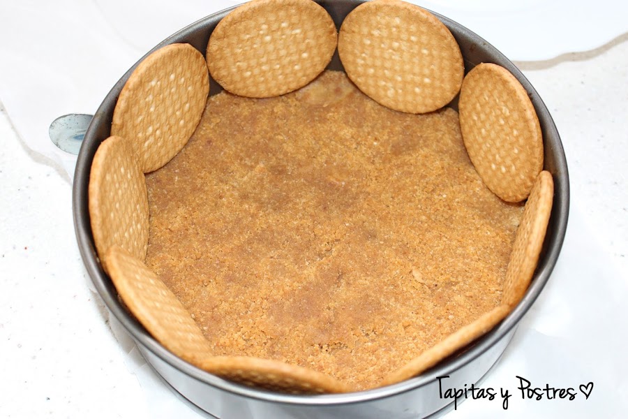 Ahora colocamos las galletas alrededor del molde.