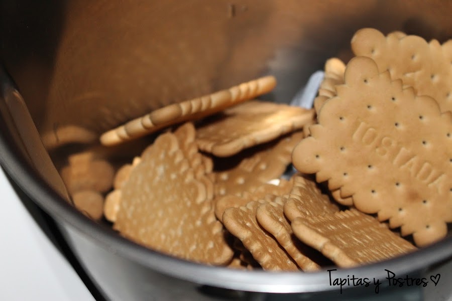 Primero trituramos las galletas y las mezclamos con la mantequilla fundida.