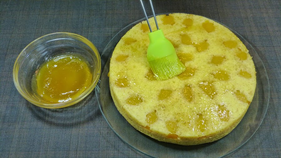Al pincelar la tarta con la mermelada de níspero quedará mas jugosa, además de bonita y se conservará más tiempo tierna.