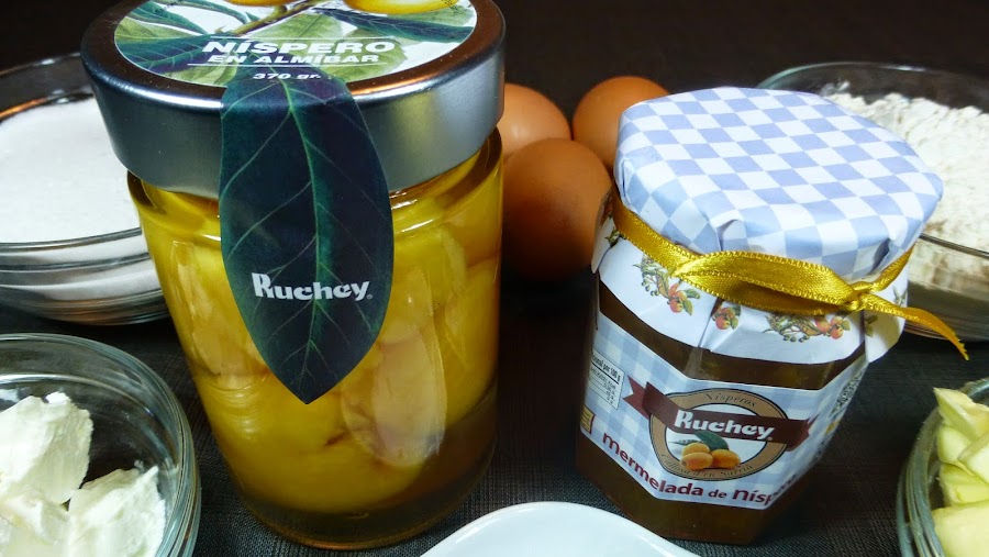 Hoy os traemos una tarta con una de nuestras frutas preferidas, el níspero. Ya se que no estamos en temporada pero el otro día vi en la web de Ruchey nísperos en almíbar y otros productos a los que no pude resistirme a comprarlos. Sorprendido estoy con la calidad de estos productos, sin duda, una marca de referencia. Con dos de ellos, los nísperos en almíbar y la mermelada de nísperos, realizamos esta rica tarta. Yo que tu la haría ahora mismo.