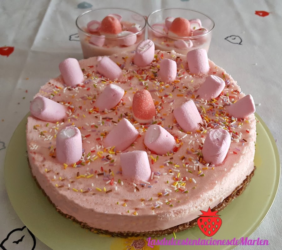 Esta tarta de nubes y petit es muy fácil de preparar, sin horno. El resultado es una deliciosa tarta con alegría y color, perfecta para fiestas con niños. Les encantara os lo aseguro, y a los que no son tan niños también!!!