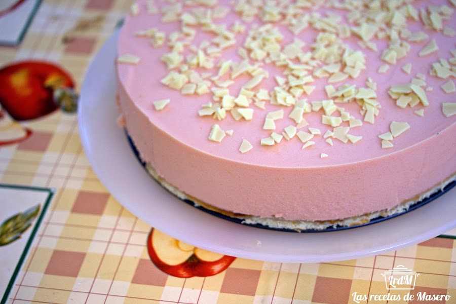 En la foto desde arriba parece que está deshecha la base de bizcocho. No es así, simplemente es por el ángulo de la foto y porque está sin desmoldar de la base del molde , como podéis ver. En la foto frontal del inicio podéis apreciar como queda la base de bizcocho.