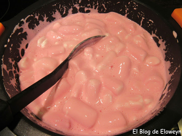 Derretimos las nubes a fuego lento y sin parar de remover, para que no se quemen. Como puse sólo la mitad de las nubes a principio, a medida que se iban derritiendo iba añadiendo más nubes.