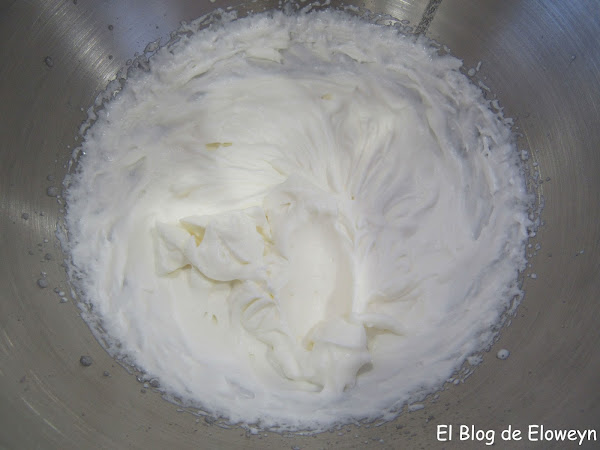 A continuación montamos la nata (crema de leche) para los adornos de la misma forma que hemos hecho con la nata (crema de leche) del relleno.