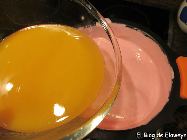 En este momento podréis ver que parece que se corte, pero no os preocupéis. No pasa nada. En un principio me asusté, pero decidí continuar. En realidad la masa parece que se separe en dos partes: una más líquida y otra más sólida. Al final cuajarán las dos. La parte más líquida quedará abajo y la más sólida arriba, haciendo un bonito efecto.