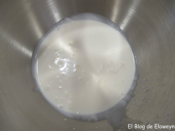 Reservamos la mezcla en un bol. Iremos removiendo la mezcla de tanto en tanto para evitar que cuaje. Tenemos que dejar que se enfríe hasta llegar a temperatura ambiente, pero no puede cuajar, o sea, que estad al tanto. Si véis que va cuajando, removed con una cuchara o unas varillas, para que no se hagan grumos.