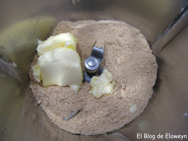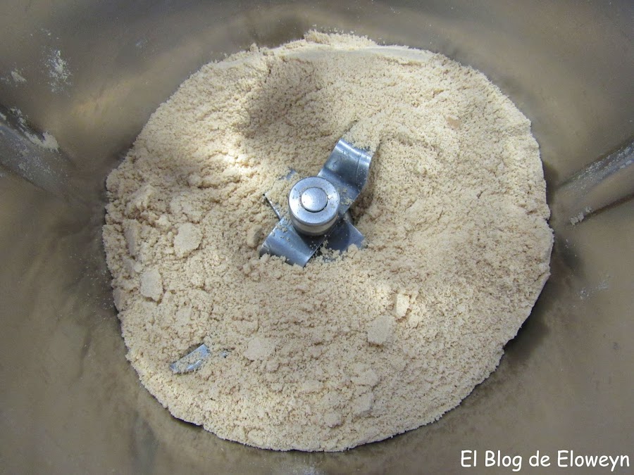 Picamos las galletas. Si usáis la thermomix, son unos 5 segundos a velocidad 10. Si usáis una picadora, han de quedar con este aspecto: