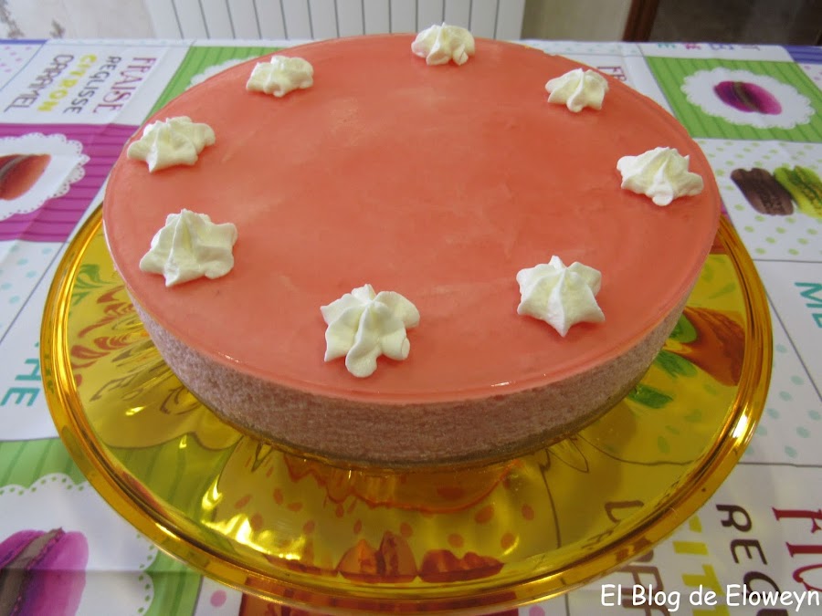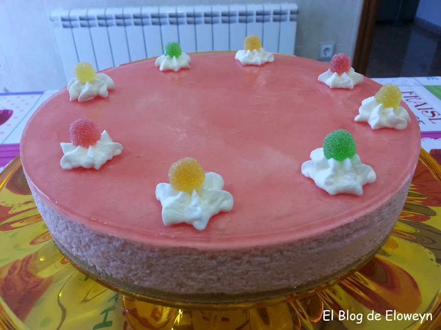 ¡Pero qué buena que está esta tarta! Sí, lo habéis leído bien. Es una tarta de nubes, de esas chuches que son tan esponjosas y de color rosa, que cuando te las comes se te deshacen en la boca. Navegando por la red encontré una receta de tarta de nubes, pero no me acabó de convencer, y al final hice mi propia versión.Os tengo que avisar que es una tarta enooorme. Tenía un molde de 26 cms. y la tarta llegaba hasta arriba. Por lo tanto, si no queréis hacer una tarta tan grande, podéis poner la mitad de los ingredientes del relleno. La cantidad de la base de galletas, de la gelatina y de la nata (crema de leche) para adornar la tendréis que dejar igual, pero el relleno lo podéis dividir y hacer la mitad. Eso sí, una vez hecha os vais a arrepentir de haber hecho sólo la mitad... ¡¡¡porque está buenísima!!! jajaja.