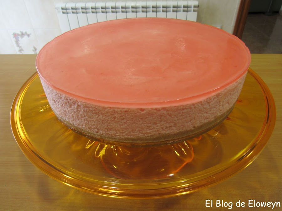 Volvemos a dejar la tarta en la nevera y esperamos a que la gelatina cuaje. Cuando haya cuajado, sacamos de la nevera y desmoldamos con cuidado.