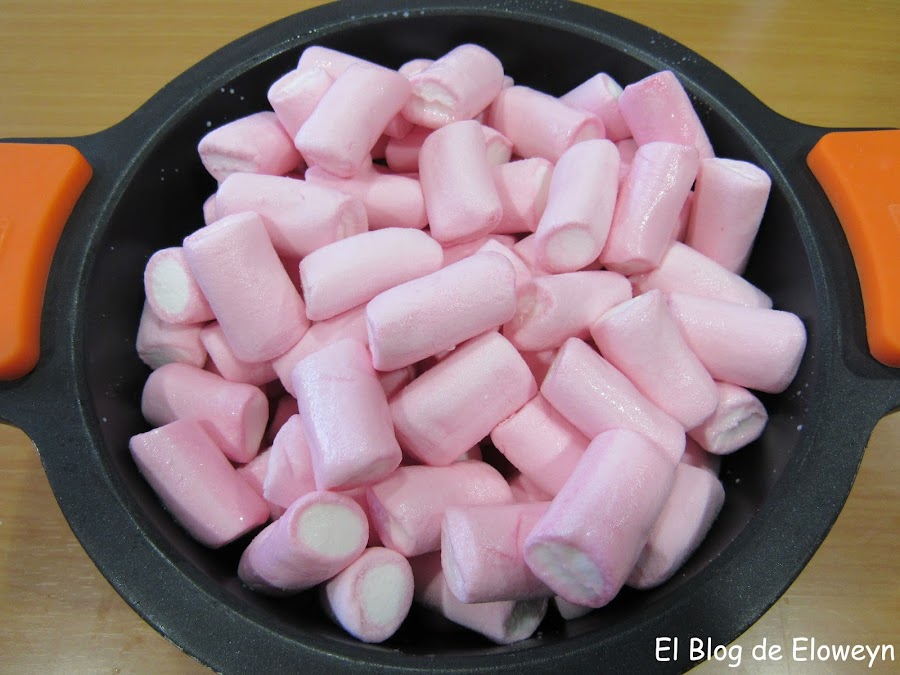 La segunda: Os aviso que cuando las nubes están completamente derretidas son muuuy pegajosas. En un principio pensé en derretirlas en la Thermomix, pero como sabía que después me iba a costar bastante limpiarla usé una olla, y no me arrepentí. Por lo tanto, usad una olla que sea fácil de limpiar después.