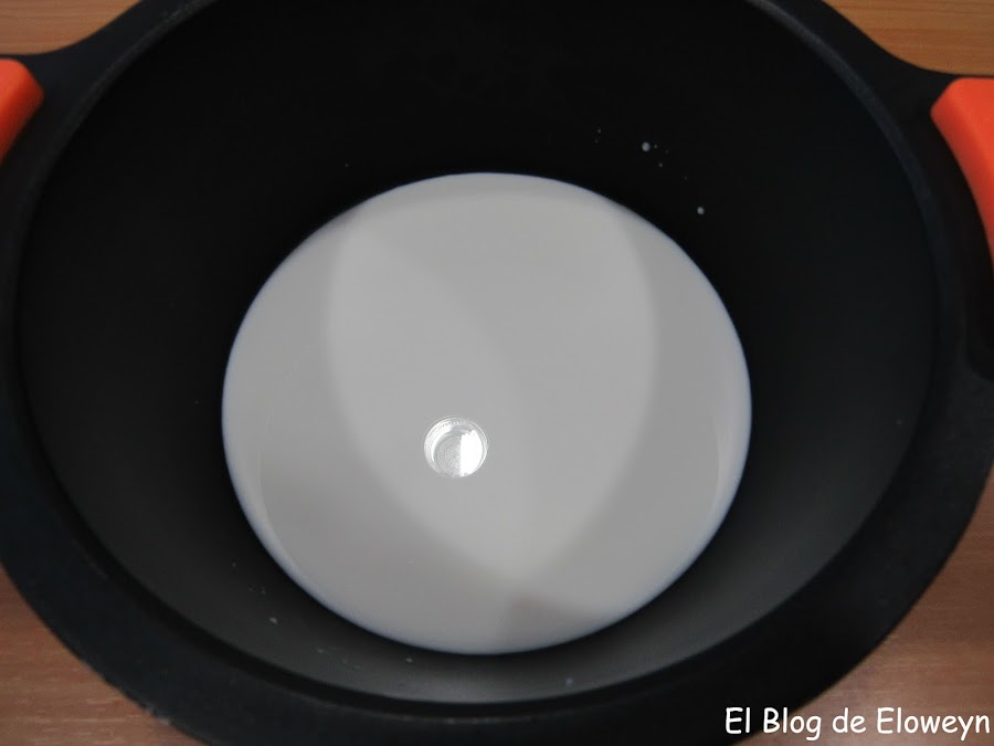 A continuación seguimos con el relleno. Ponemos la leche en una olla.