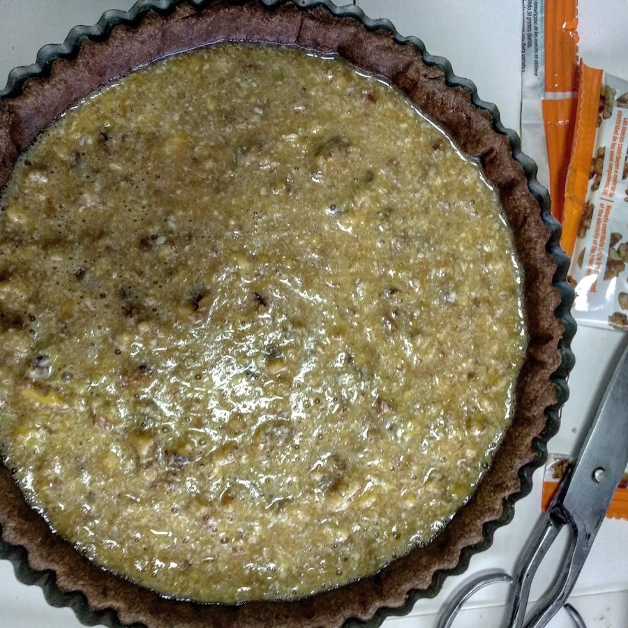 Si habíamos reservado masa de la base hacemos la decoración, unas hojas, tiras para hacer enrejado...etc y encima de la decoración pondremos unas nueces enteras esta vez.