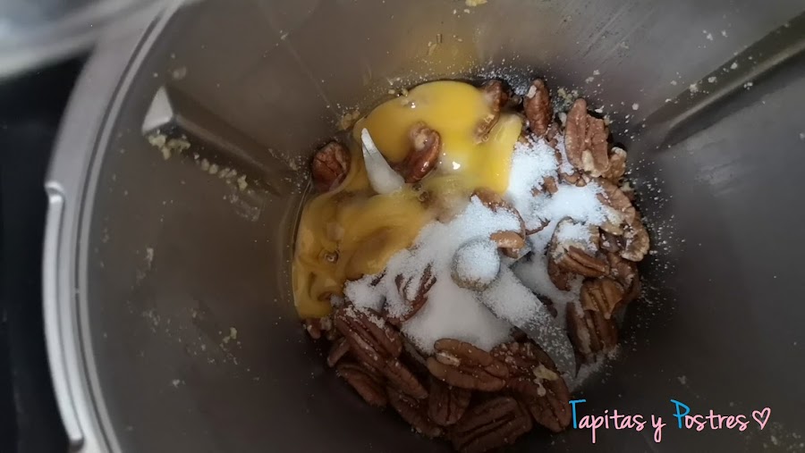 Y la miel. Trituramos 25 segundos a velocidad 45, queremos que queden trocitos de nueces. No que se hagan polvo.