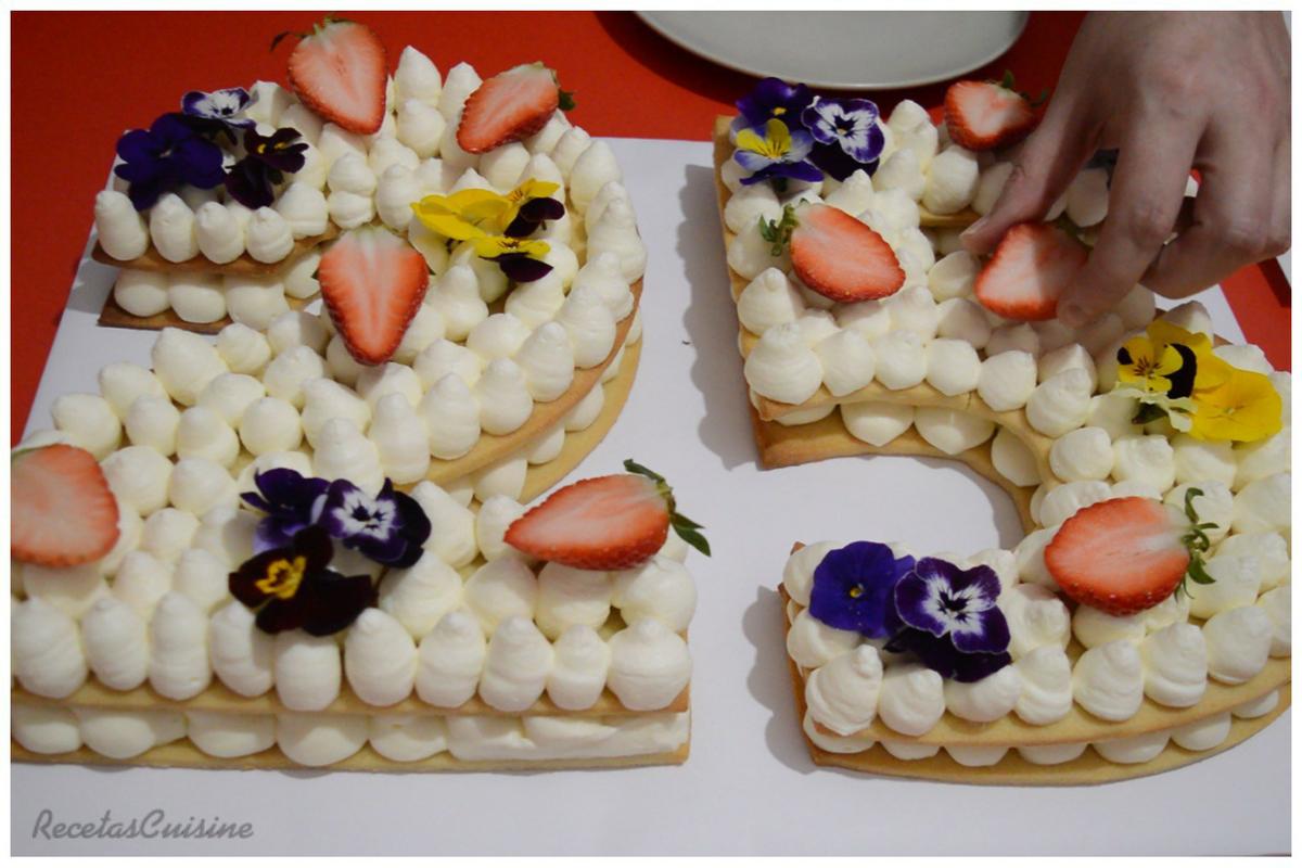 Si vamos a preparar la tarta para una persona que cumple años o celebra un aniversario de una fecha que sólo tiene una sola cífra, es decir, entre los números 1 y 9, pues haremos la receta dividiendo la cantidad de ingredientes a la mitad.