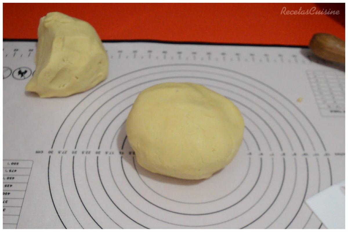 6. Seguidamente, cogemos algo más de la mitad de la masa y hacemos una bola con ella. Es una masa muy manejable, que no se pega en las manos y que se trabaja genial; ideal para la tarta que queremos hacer.