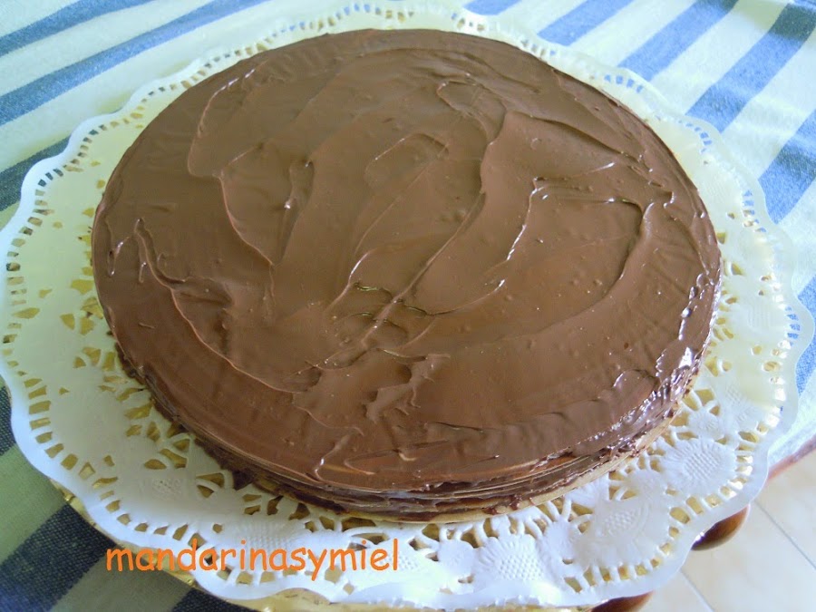 Pon otra oblea y vuelve a untar con nutella y así hasta que termines las obleas o la nutella, yo he puesto 10.
