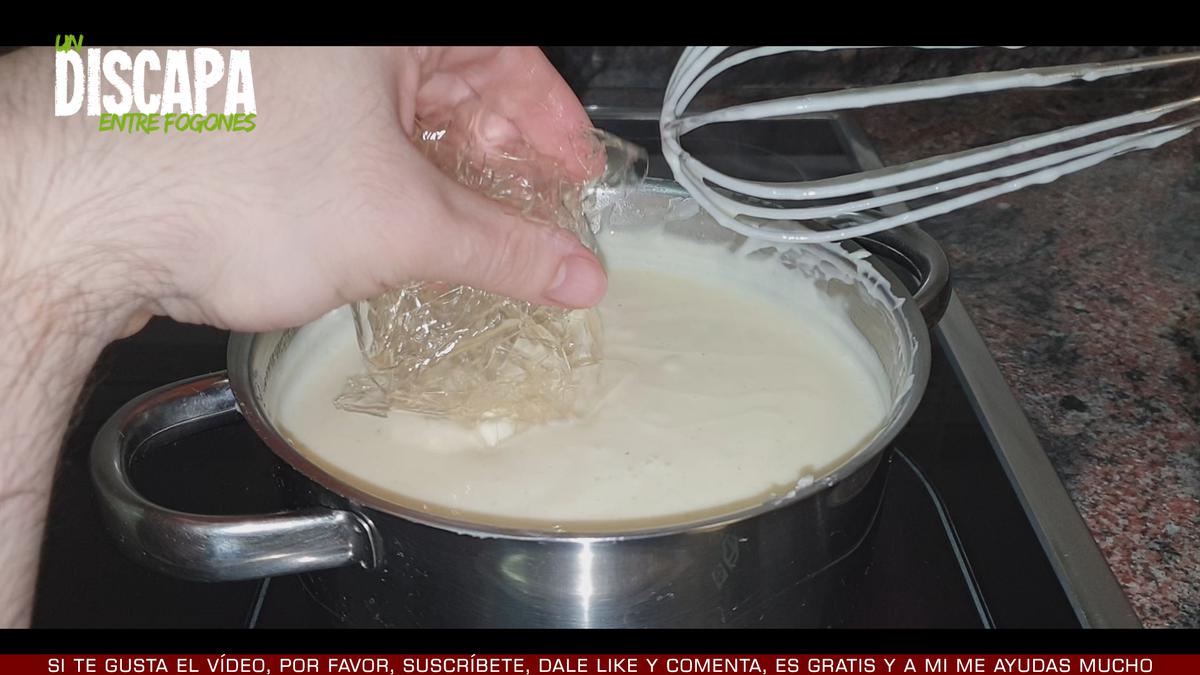 Dejamos que se atempere y después la metemos en la nevera mínimo 6 horas, para que cuaje bien, pero si es de un día para otro pues mucho mejor.