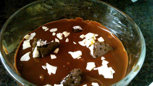Vertemos sobre la base que habíamos reservado en el congelador.