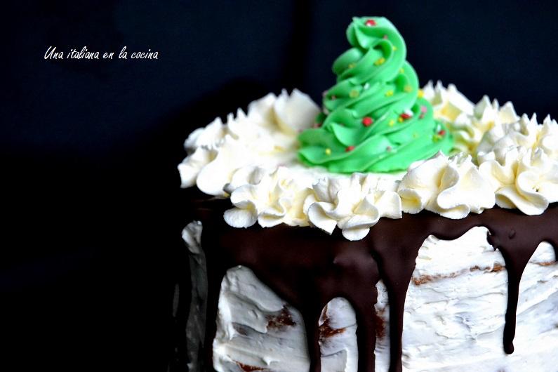 Cuando tengas los arbolitos listos colócalos sobre la tarta (me salieron grandes y me entraba solo uno). La tarta queda más rica si la preparas de un día para otro pero es importante que la tapes bien para que no se reseque.