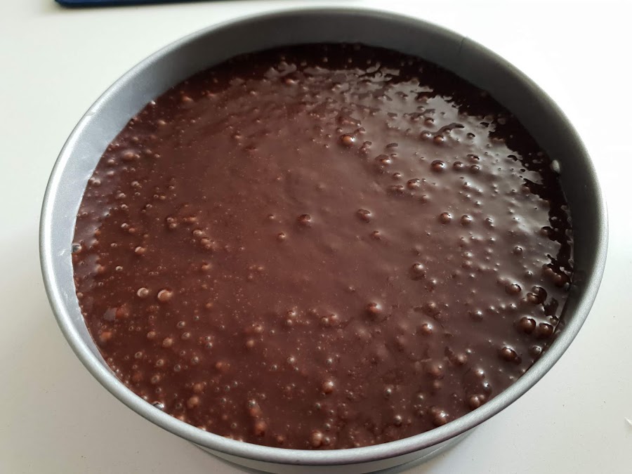 14. - Pasado ese tiempo, removemos y ya tenemos la cobertura lista para cubrir nuestra tarta.