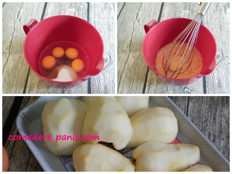 Pela las peras, pártelas por la mitad y retira las semillas.
