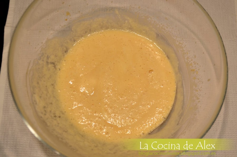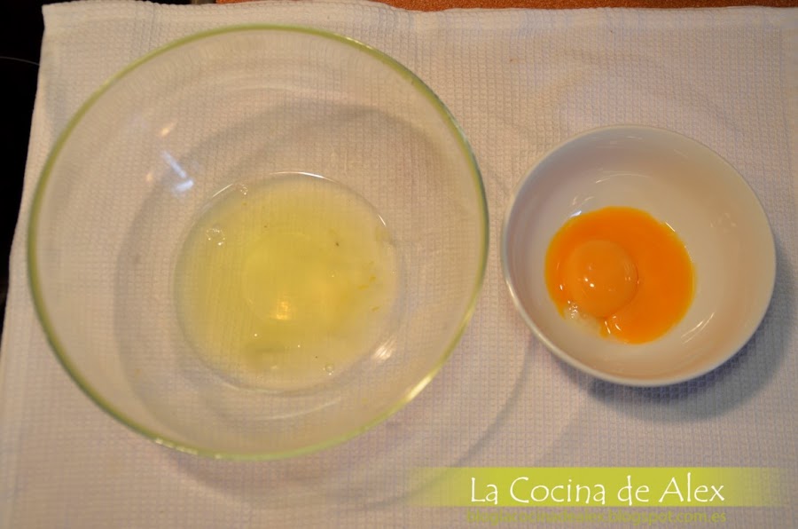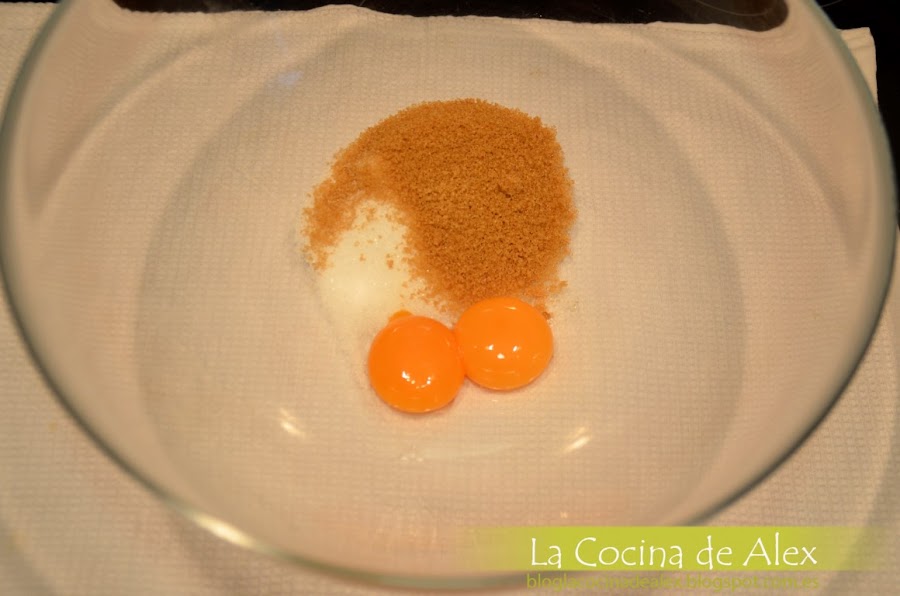 PREPARACIÓN:Lo primero que hacemos para preparar la masa es separar las claras de las yemas y en un bol batimos con las varillas las yemas con los dos tipos de azúcar, una vez esta todo bien montado e integrado.