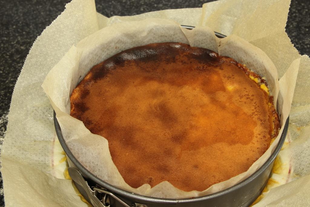 Vertemos y repartimos bien en el molde refrigerado, damos unos golpecitos con el molde en la encimera para evitar burbujas y llevamos al horno, a 200ºC, calor arriba y abajo durante 40 minutos. Cuando queden 15 minutos de horneado bajamos la temperatura del horno a 180ºC y seguimos horneando.