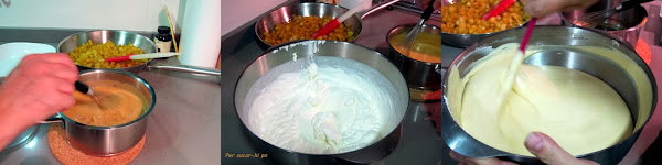 Añadir la crema a la nata (crema de leche) con movimientos suaves y envolventes. Reservar en la nevera.