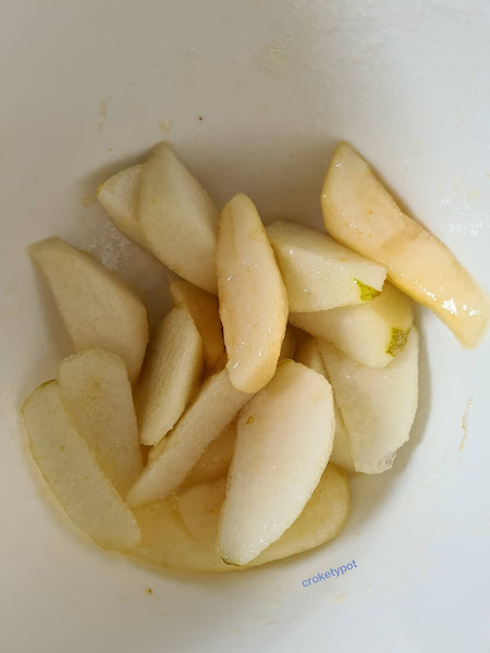 En un bol ponemos el resto de ingredientes junto con el líquido que han soltado las peras.