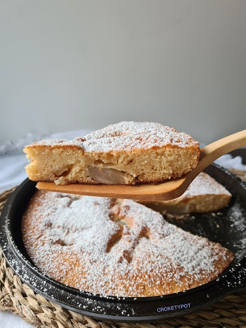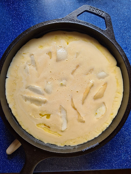 Verteremos la mezcla, ponemos las peras y horneamos 40 minutos, o hasta que al pincharlo salga la aguja limpia.