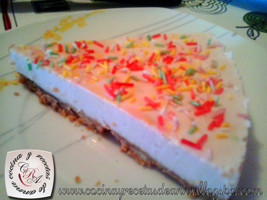 Una vez homogeneo lo ponemos en el molde con la base de galleta que teniamos reservado.