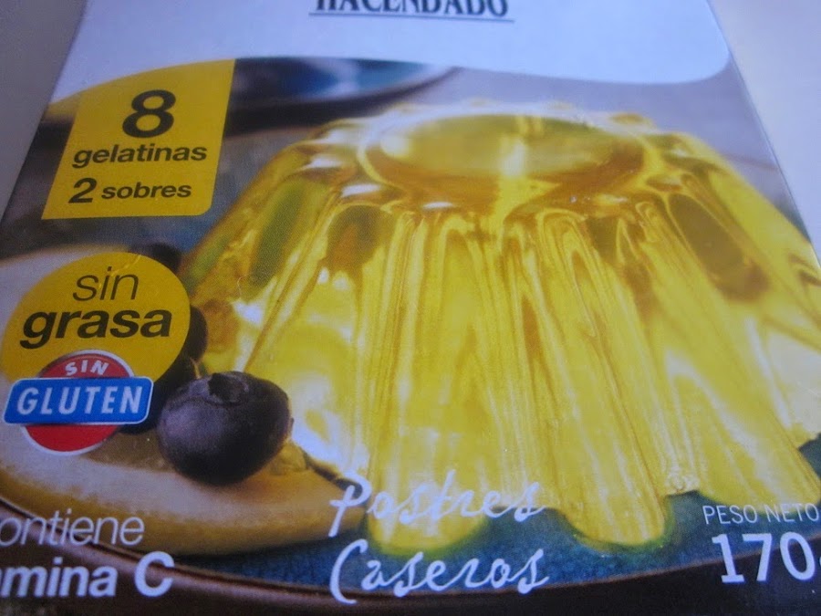 Ponemos en un cazo la nata (crema de leche), los 30 gramos de azúcar y el jugo de la piña, cuando rompa a hervir añadimos el sobre de la gelatina y cocinamos siguiendo las instrucciones del fabricante. Como a veces los lectores latinoamericanos no emplean las mismas palabras que usamos en España os dejo foto de lo que aquí conocemos como gelatina.