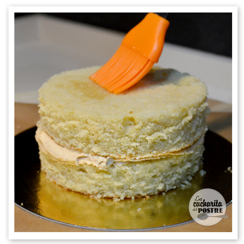 4. Pinta nuevamente el bizcocho con el almíbar...