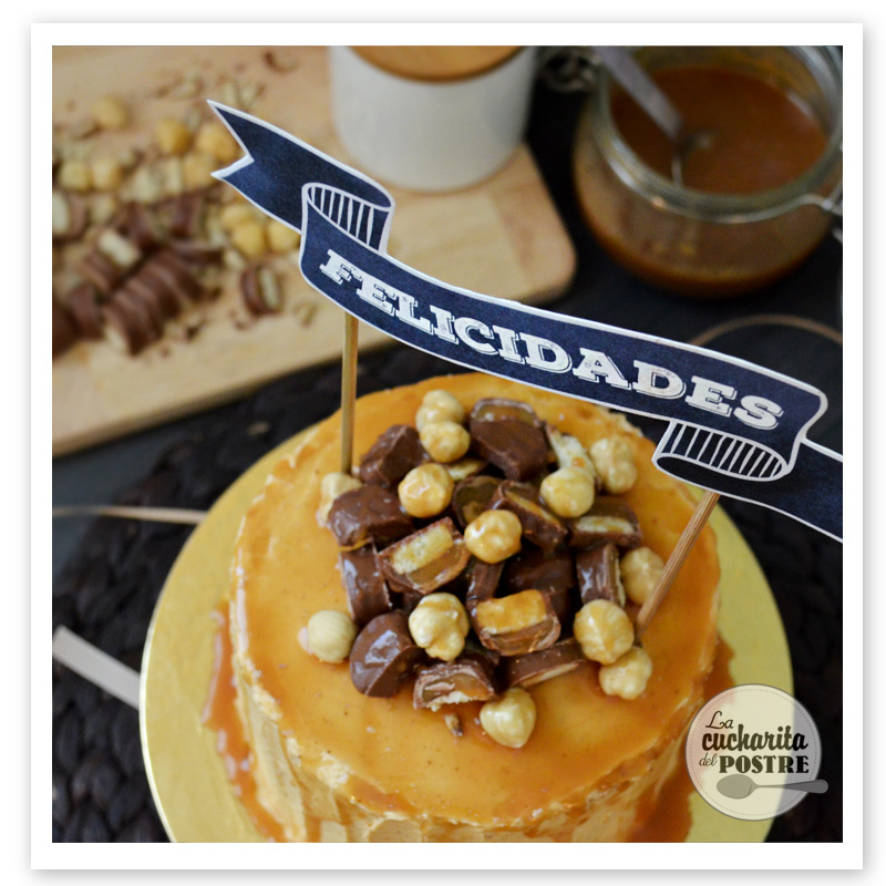 No te hemos podido enseñar el corte de la tarta porque formaba parte del regalo y la sorpresa del cumpleaños de mi padre y no queríamos dársela con un trocito de menos. Aún así quedó riquísima, esponjosa y con una mezcla de sabores que combinaban a la perfección. Como puedes ver también, con un topper adecuado encima de la tarta la puedes personalizar para cualquier celebración.