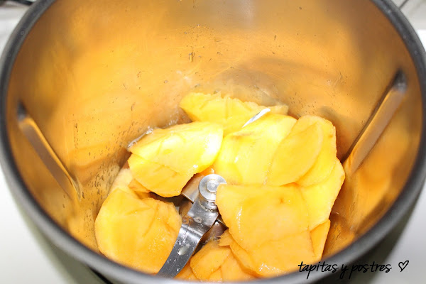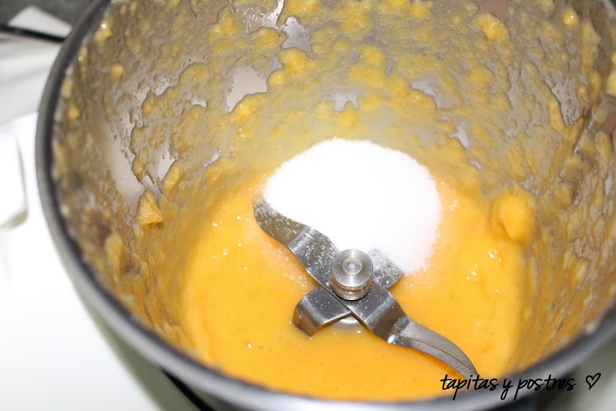 Troceamos el caqui y lo trituramos con el zumo de naranja