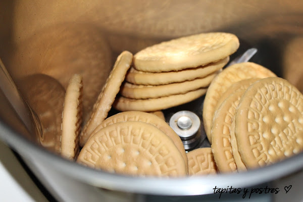 Trituramos las galletas en la thermomix 10 segundos a velocidad 8.