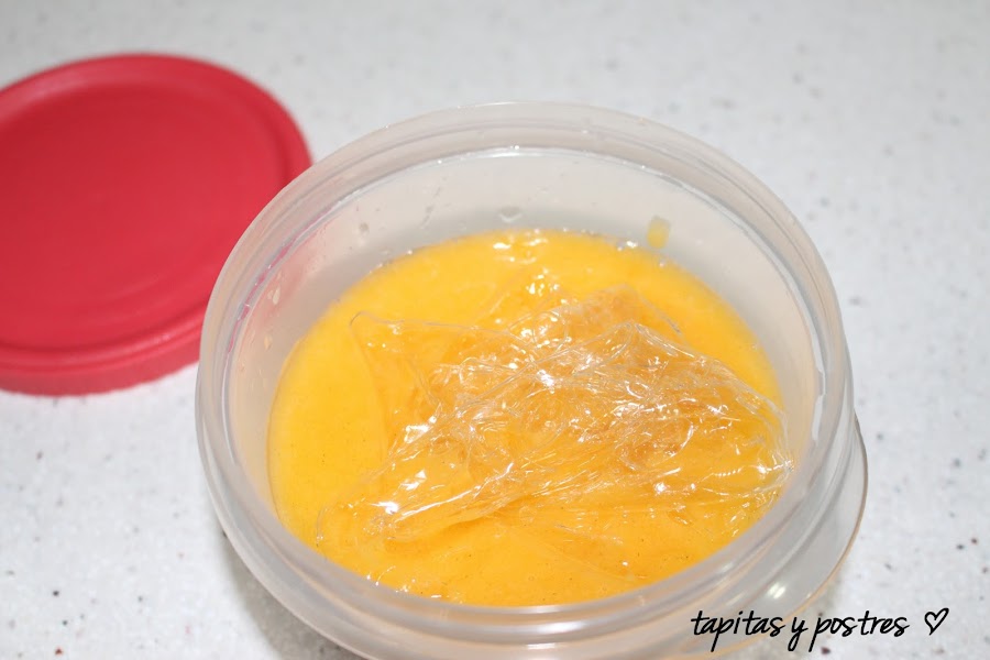 Cuando la crema esté bien cuajada preparamos la gelatina de caqui.