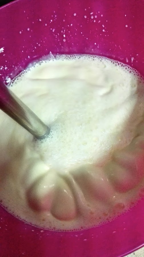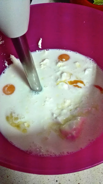 Vamos a echar todos los ingredientes en un bol y con la batidora batimos todo muy bien hasta que quede bien integrado.