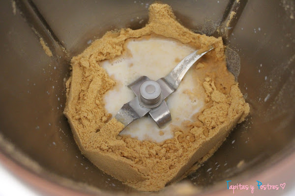 Si no tenemos thermomix vamos a machacar las galletas con un rodillo y a mezclarlas con la leche. Ponemos en el fondo del molde y reservamos en el congelador.
