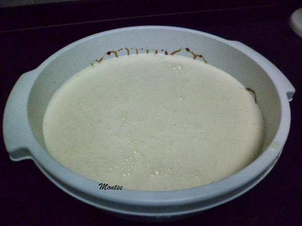 Lo echaremos en el molde donde hemos puesto el caramelo.