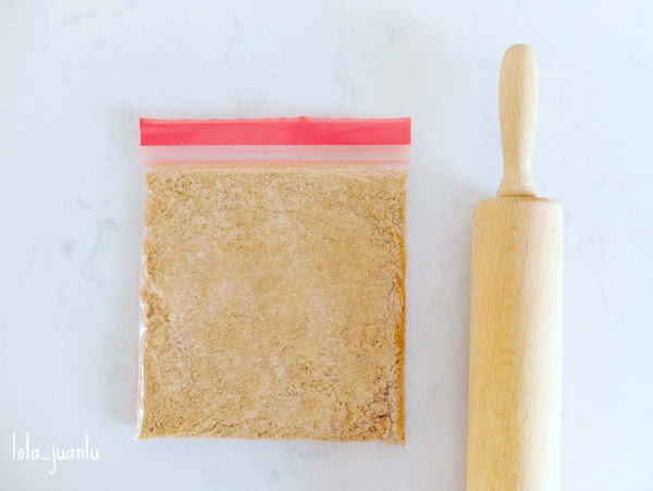 Pesamos las galletas y las picamos con ayuda de un robot de cocina. También se puede hacer manualmente, en este caso, las metemos en una bolsa de plástico que cerramos y luego las aplastamos con un rodillo hasta lograr la textura de migas.