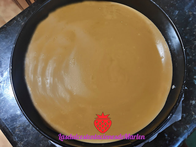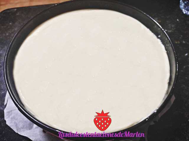 Yo he utilizado un molde desmontable de 22 cm y he forrado la base con papel de horno.